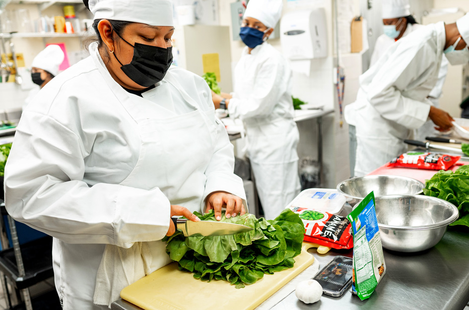 “Working in the kitchen and following Chef Millie gave me a glimpse of what it’s going to be like in a real kitchen,” said Mike C., a participant in the cooking demonstration. “Chef Millie was the head chef giving orders and following it was our job. I learned that there’s a lot of teamwork and efficiency needed for a kitchen to work.”